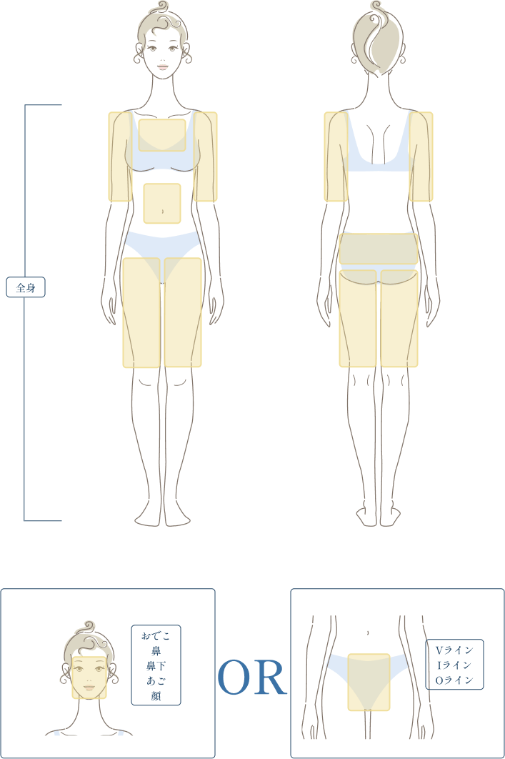 全身脱毛黄色部位+顔 or VIOセット