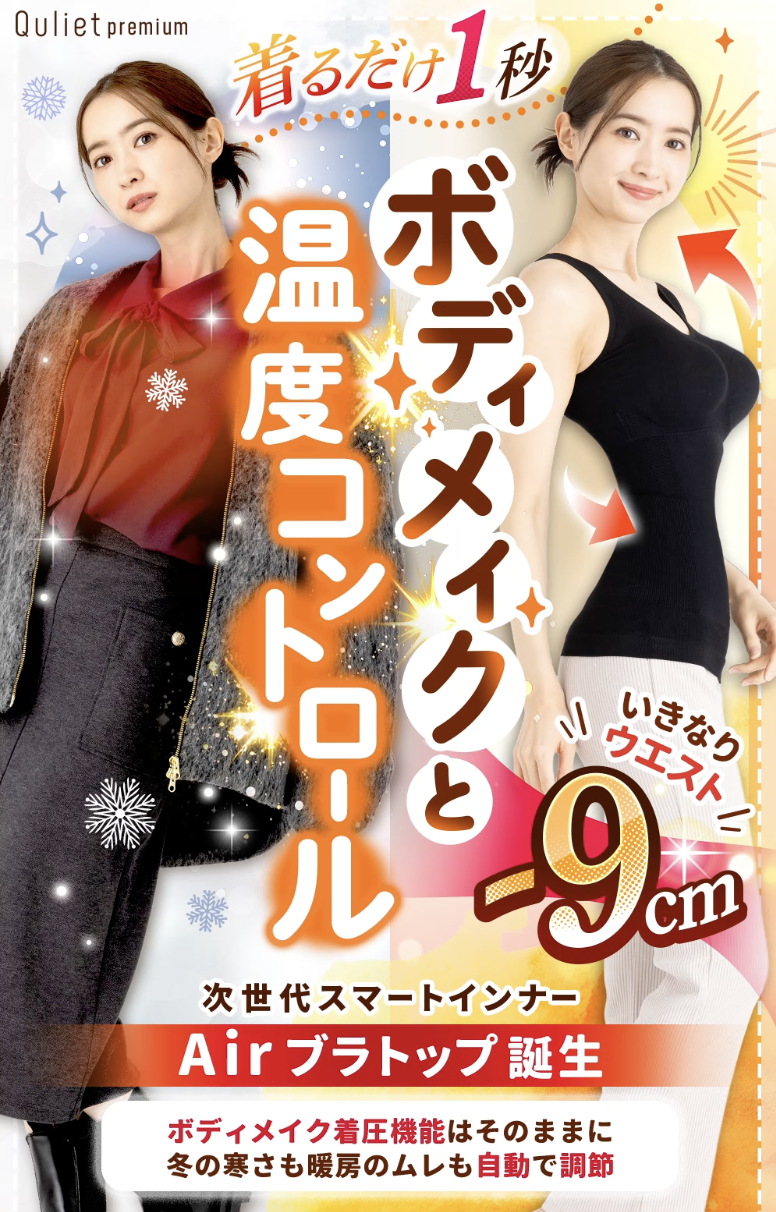 「着るだけ1秒でボディメイク」をコンセプトに、バストケア、ウエストのくびれ、姿勢補正を同時にサポートする多機能インナーとして注目を集めています。
