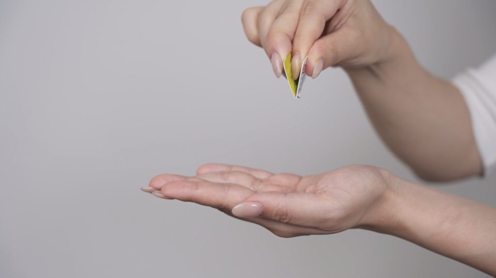 洗顔後に化粧水で肌を整えた後、パウチを開けて手のひらに取ります。清潔な手で扱うことで、美容液の効果を最大限に引き出すことができます。